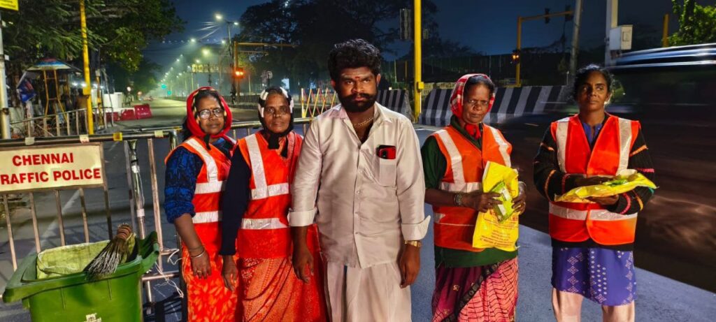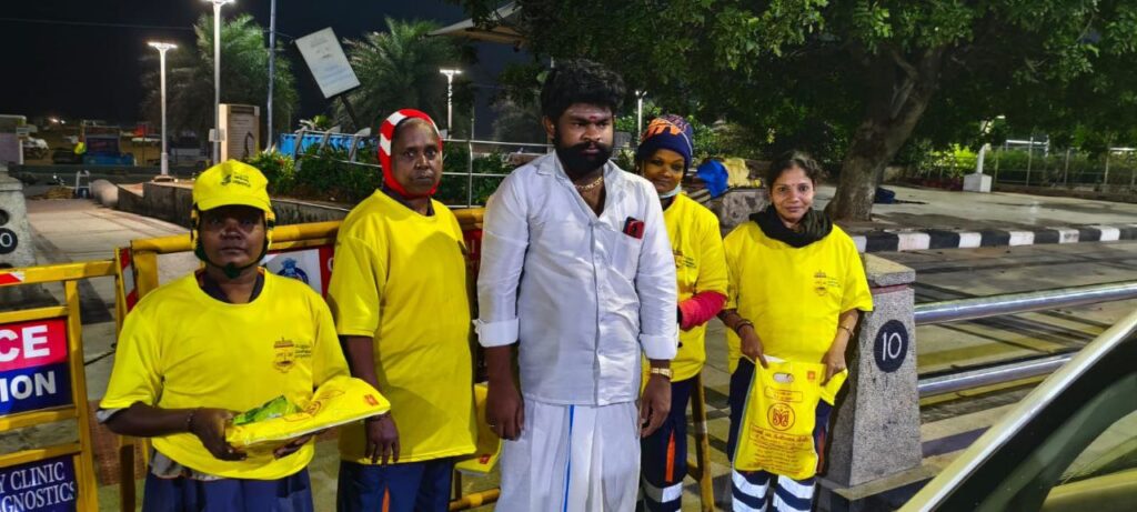 15.01.2026 அன்று நள்ளிரவு (அதிகாலை நேரத்தில்) நடைபெற்ற இந்நிகழ்வில், சமூக நலனுக்காக இடைவிடாது பணியாற்றி வரும் பணியாளர்களையும், பொருளாதார ரீதியாக பின்தங்கிய மக்களையும் கௌரவிக்கும் நோக்கில் இலவச இனிப்புகள், வேஷ்டி மற்றும் சேலைகள் வழங்கப்பட்டன.